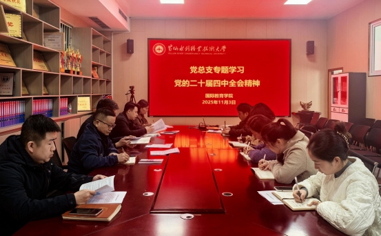 11月3日,国际教育学院开展第一议题学习,专题学习党的二十届四中全会精神,会议由党总支书记楚万强主持,学院科级以上干部参加。会上集中学习了《中国共产党第二十届中央委员会第四次全体会议公报》和《中共中央关于制定国民经济和社会发展第十五个五年规划的建议》。