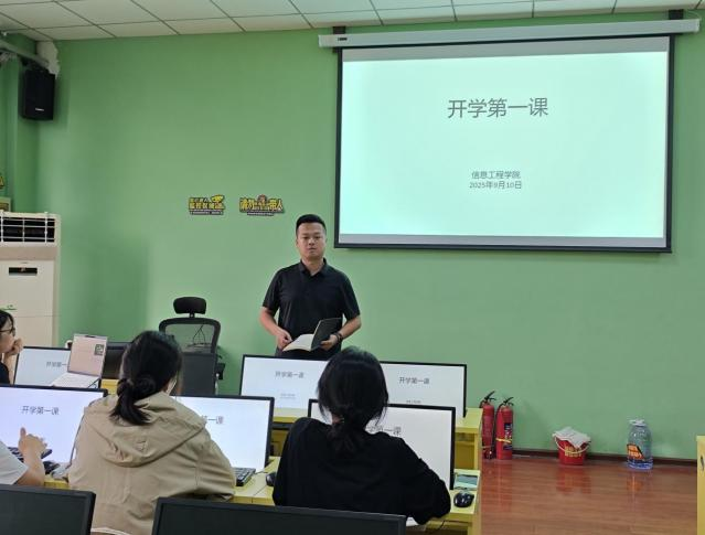 9月10日,信息工程学院辅导员王子昱为所带班级学生开班会,主题为“开学第一课”。王子昱老师以“爱国、励志、求真、修能”为主线,向学生做爱国主义教育,同时结合校规校纪、防诈骗等案例,叮嘱学生养成规矩意识,提醒学生守好“钱袋子”,鼓励学生自律互助。此次班会内容充实,氛围良好,为学生成长奠定良好基础。