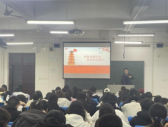 10月23日,信息工程学院辅导员曾铭在3号教学楼3102组织召开“致敬英雄先烈 勇担时代重任”主题班会。班会上,曾老师讲述抗战时期的经典战役、分享英雄烈士的英勇事迹,再现那段波澜壮阔的历史。同时还结合习近平总书记对青年担当的殷切期望,鼓励同学们从抗战精神中汲取力量,在学业上勤奋钻研,在生活里积极奉献,以实际行动践行青春使命。