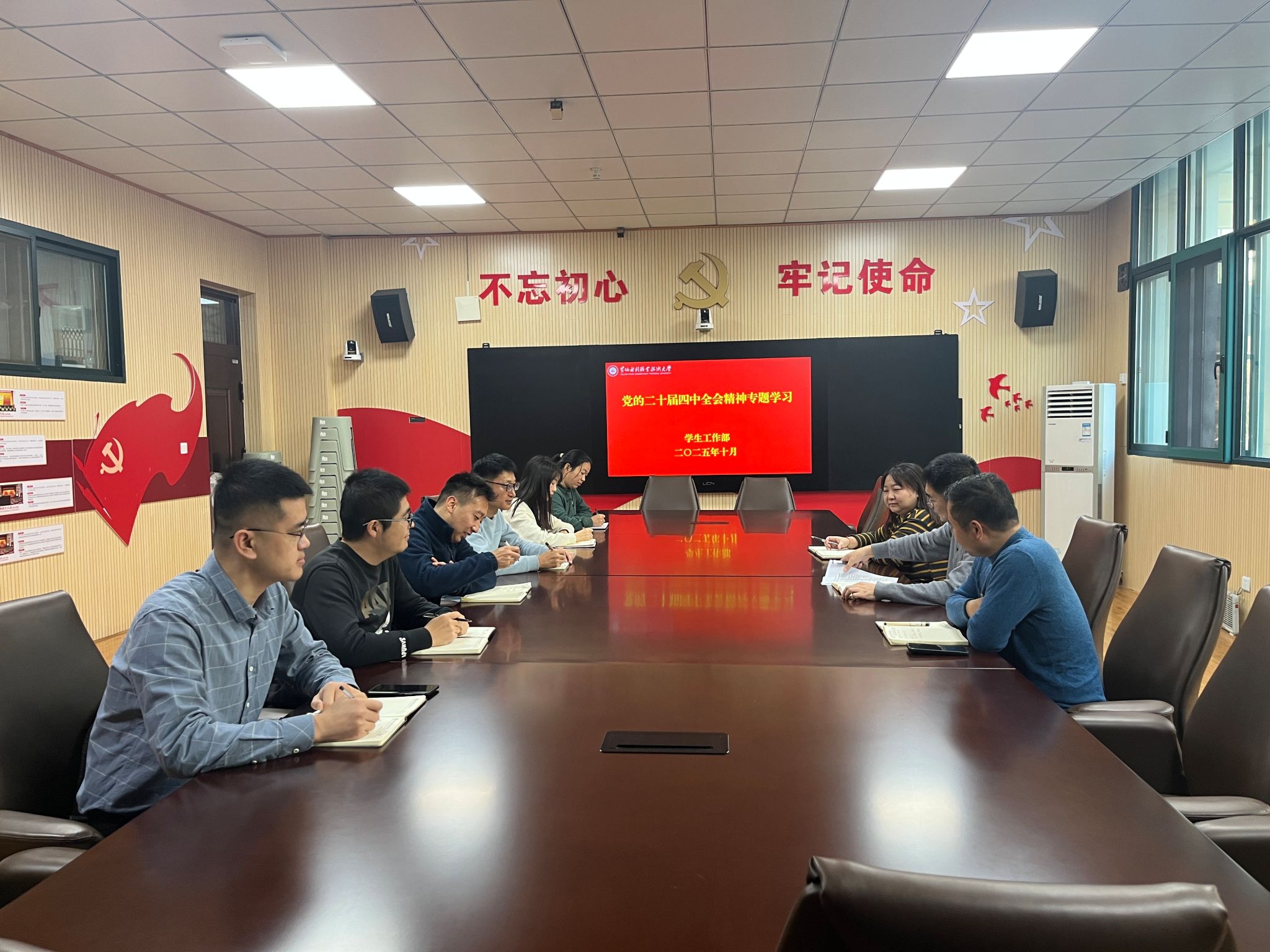 11月3日,学生工作部在JX5111召开专题学习会,深入学习党的二十届四中全会精神,结合学生工作实际部署落实举措。学生工作部部长商坤主持会议,部门全体成员参与学习研讨。