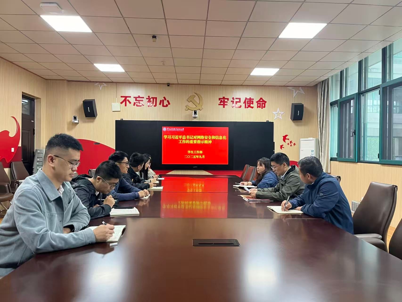 会议伊始,全体成员共同学习了习近平总书记对网络安全和信息化工作的重要指示精神。商坤部长结合当下网络发展的迅猛态势以及网络安全面临的复杂挑战,深入剖析了指示精神的内涵与重要意义。他指出,网络安全是国家安全的重要组成部分,在数字化时代,网络空间已成为人们生产生活的新空间,也是我们开展学生工作的重要阵地。