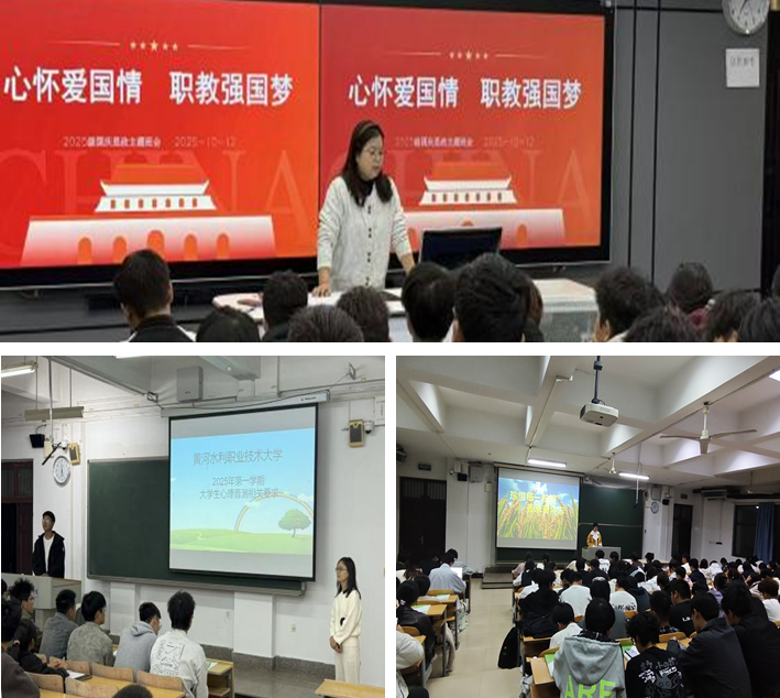 为深入贯彻党的教育方针,全面落实立德树人根本任务,紧密结合国庆节、世界粮食日、抗美援朝纪念日等重要时间节点,2025年10月,学生工作部统筹各学院,围绕“心怀爱国情,职教强国梦”“珍惜每一粒粮,传承奋斗志”“致敬英雄先烈,勇担时代重任”三大核心主题,精心组织开展了系列思想政治教育主题班会,引导学生厚植家国情怀、锚定职业理想、传承奋斗精神,取得了显著的育人成效。