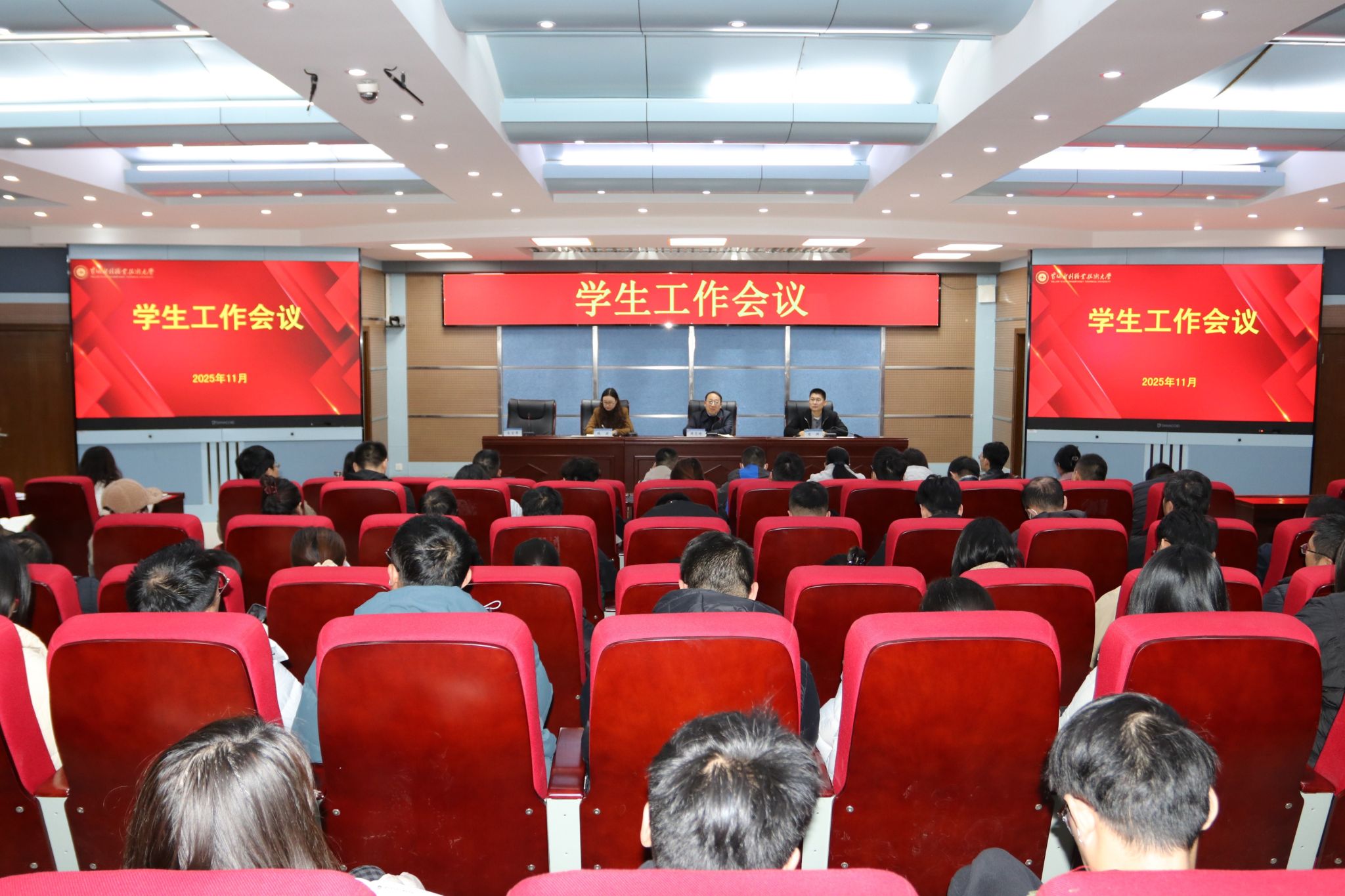 学生工作部部长商坤通报近期学生工作情况,剖析典型案例、分析存在问题、研判当前形势,并就有针对性地开展思想政治教育工作、教育引导学生规范校园行为与网络行为、抓好冬季宿舍消防安全等方面提出具体的工作部署与要求。