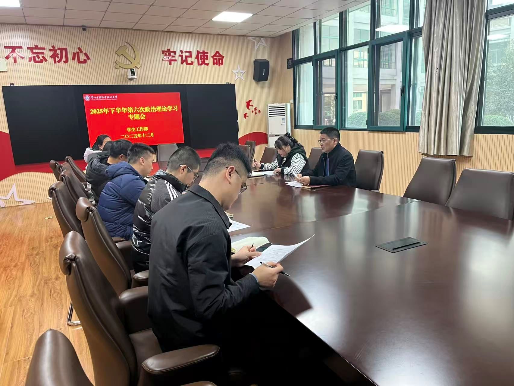 12月2日,学生工作部召开2025年下半年第六次政治理论学习专题会,此次会议聚焦《教育部等九部门关于加快推进教育数字化的意见》和《教育部办公厅关于组织实施数字化赋能教师发展行动的通知》展开深入学习研讨。会议由学生工作部部长商坤主持,部门全体成员参加,旨在深刻领会文件精神,推动学生工作与教育数字化深度融合,在新时代教育变革浪潮中展现新担当、新作为。