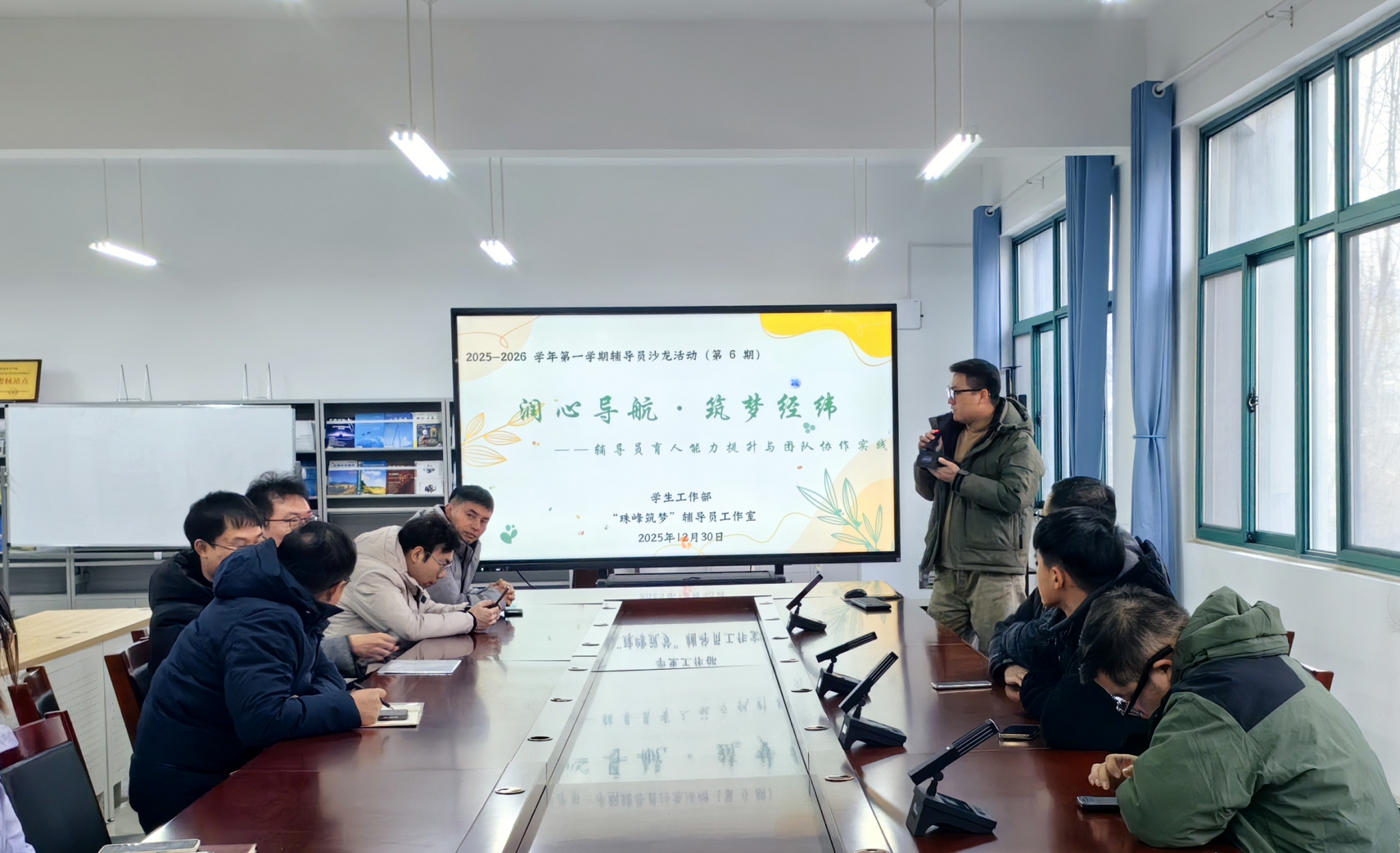 为深入贯彻落实立德树人根本任务,进一步加强辅导员队伍专业化、职业化、专家化建设,增进团队协作共识,提升育人合力,12月30日,由学生工作部主办、“珠峰筑梦”辅导员工作室承办的“润心导航·筑梦经纬——辅导员育人能力提升与团队协作实践”主题辅导员沙龙活动在SY6307顺利举行。各学院辅导员积极参与,在丰富的活动环节中碰撞思想火花,共探育人新路径。