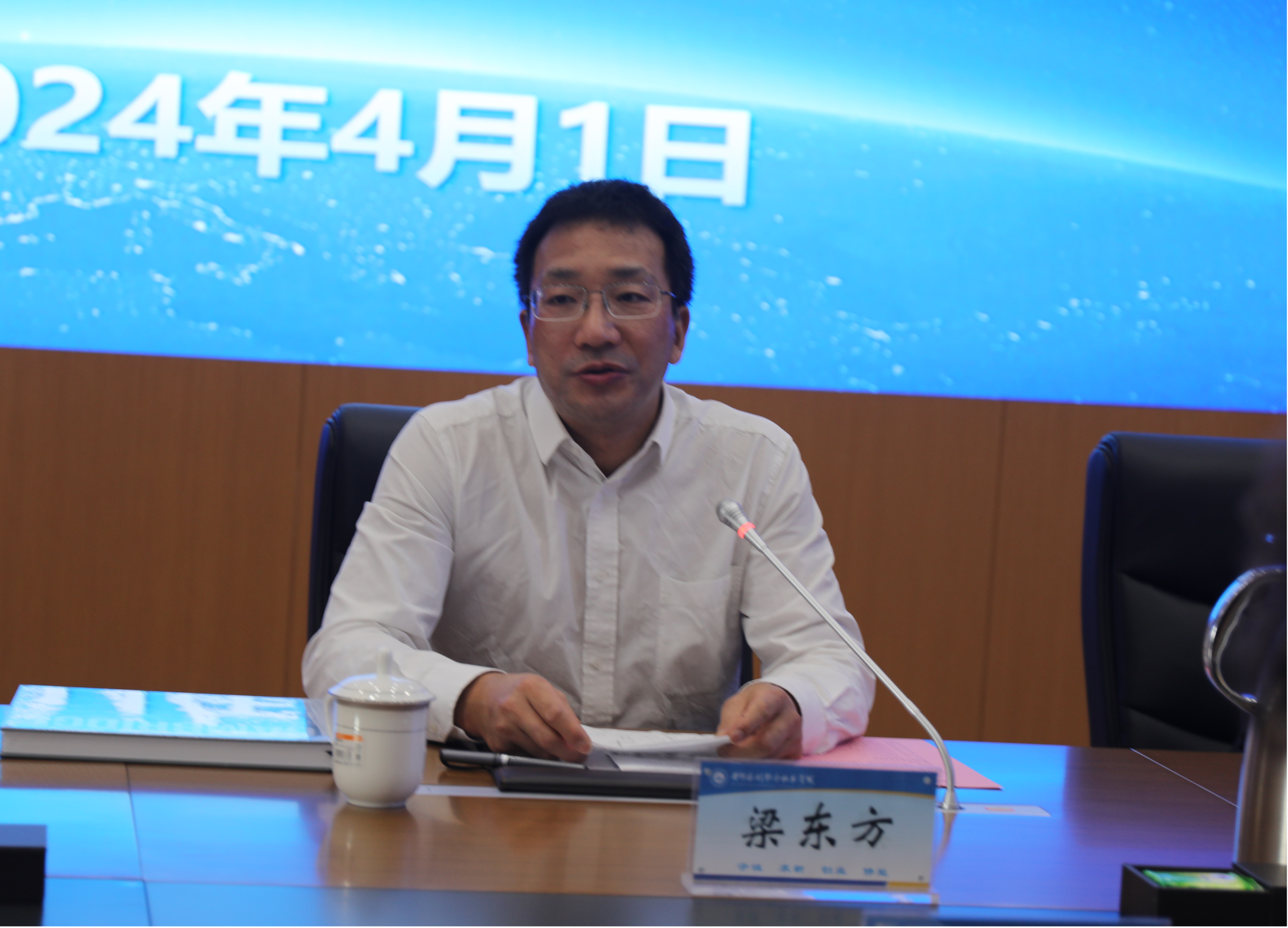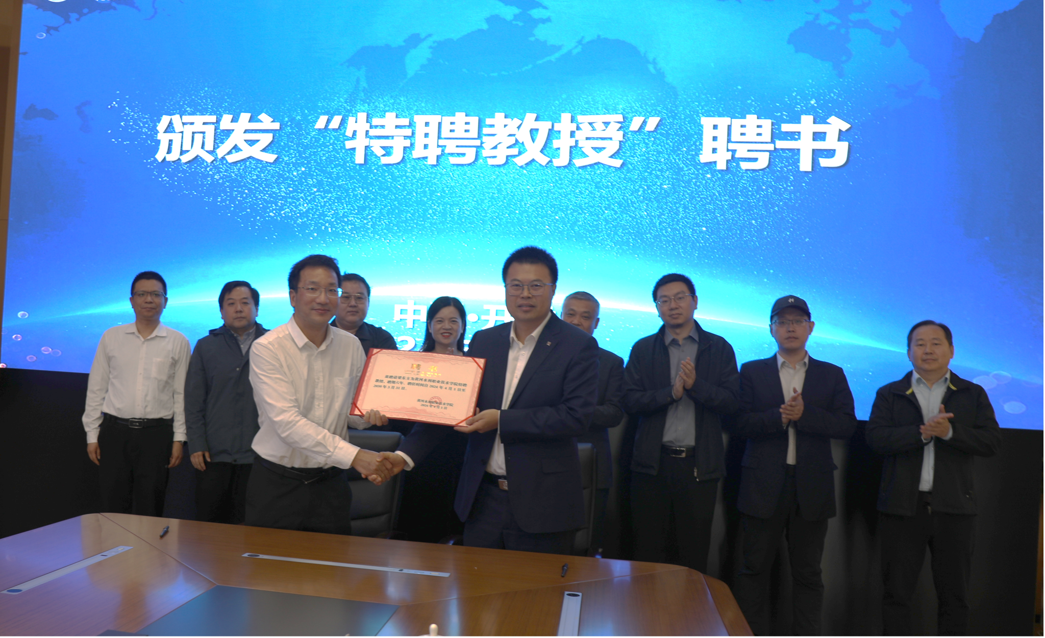胡昊为梁东方颁发特聘教授聘书。