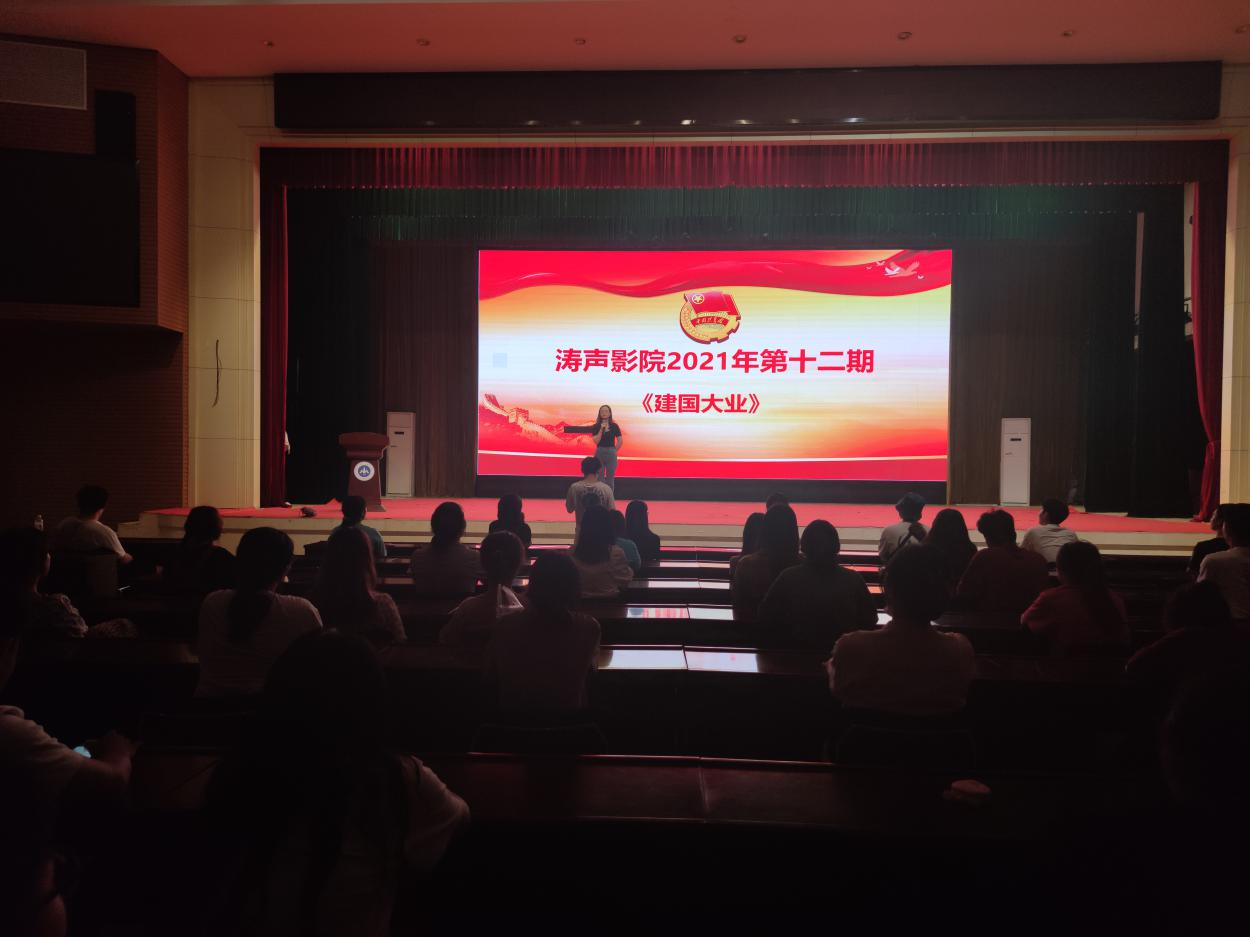 在庆祝建党100周年之际,为了使广大青年了解党的历史,赓续精神血脉,凝聚青年力量,艺术与设计学院分团委于2021年6月25日晚7点在活动中心报告厅举办2021年第十二期“涛声影院”活动,观看影片是《建国大业》。本次活动由艺术与设计学院分团委书记张嫚主持。