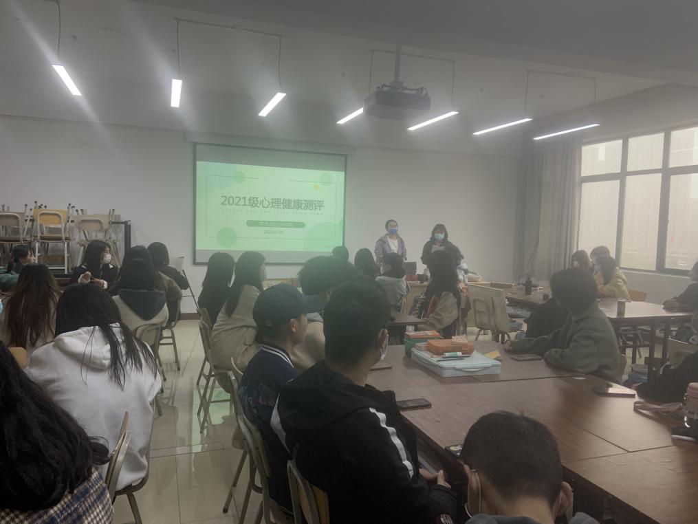 2022年3月15至16日,艺术与设计学院心理辅导老师邓亚菲、辅导员高蕊在JX2101和SY5620开展2021级大学生心理健康测评。