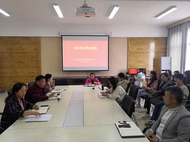 艺术与设计学院全体教师于2019年4月2日下午14:30在会议室SY5616开展政治理论学习,传达学习十三届全国人大二次会议和全国政协十三届二次会议精神。会议由党总支书记耿亚杰主持。