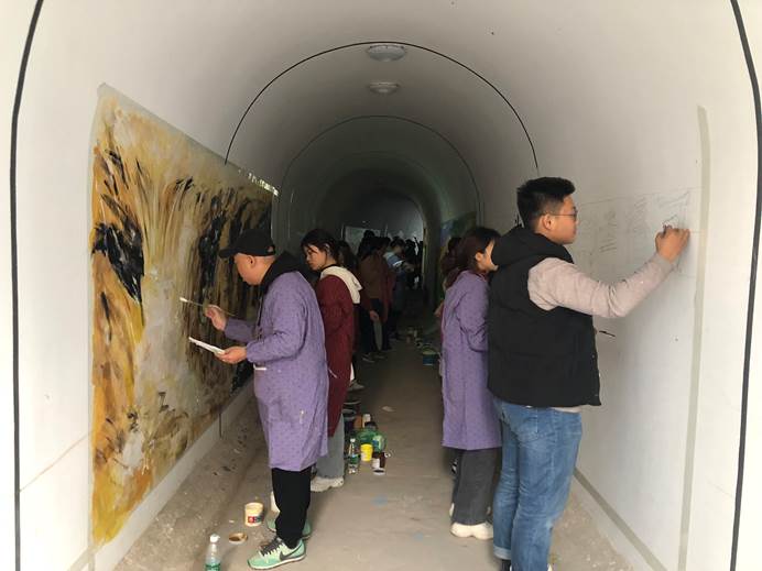 为传承弘扬黄河文化、推进学校精神文明建设、构建和谐校园,充分发挥党组织在品牌活动建设中的作用,培养党员和入党积极分子社会责任感、使命感和实践能力,艺术与设计学院党总支于2019年11月2日—3日在鲲鹏山隧道组织开展““艺”心向党、共绘中国梦”墙绘活动。