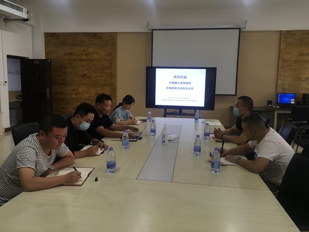 2020年7月16日上午,河南超凡装饰设计有限公司崔亮总经理到艺术与设计学院就环境艺术设计专业洽谈校企合作。院长华雷、副院长鄢彬彬、环艺教研室主任杨桦、办公室主任朱宁、院就业办主任杜雨、院实训中心主任吴琛群参加此次接待和洽谈。