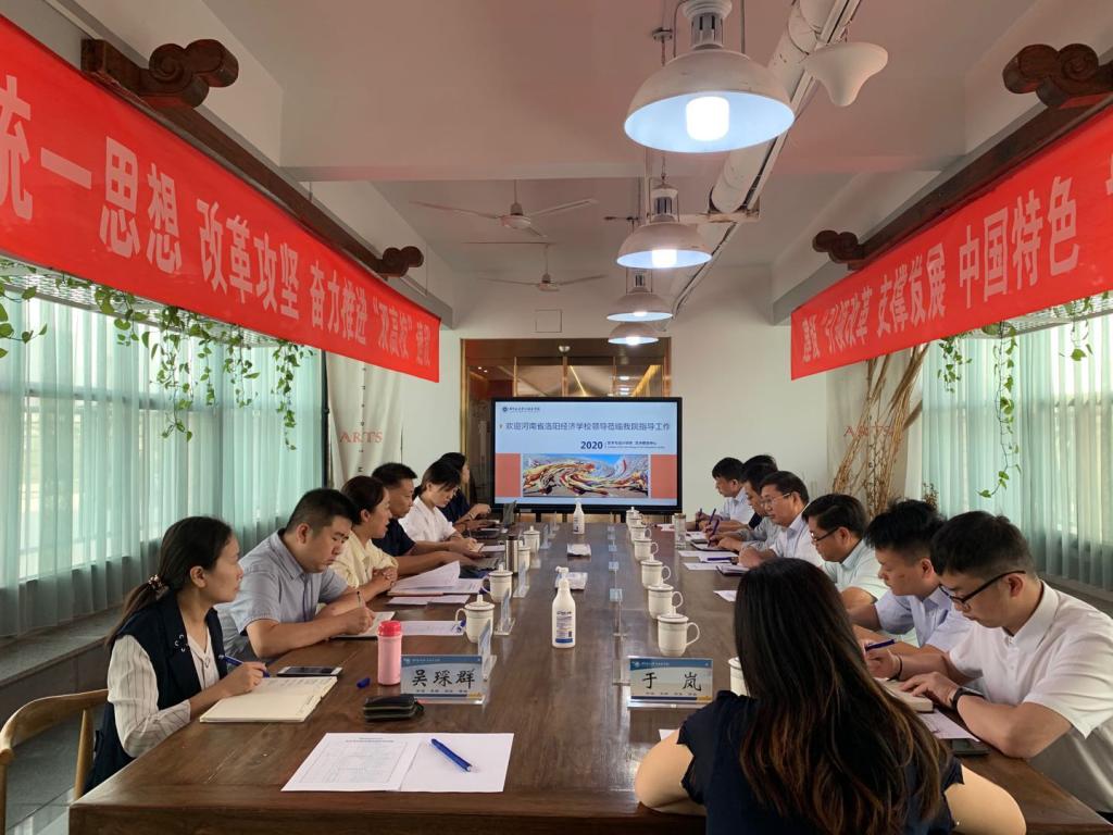2020年9月17日上午,河南省洛阳经济学校领导、教师一行到我院进行专业调研,来访的有河南省洛阳经济学校党委书记刘帅武、副校长侯永华、人事与老干部处副处长马飞强、艺术设计部副主任黄玉洁和艺术设计部的老师。我院院长华雷、党总支书记耿亚杰、副院长鄢彬彬、党总支副书记赵巍、行政办公室主任朱宁、实训中心主任吴琛群、视觉与传播教研室主任陈豫、环境艺术教研室主任杨桦参加了会议。副院长鄢彬彬主持会议。