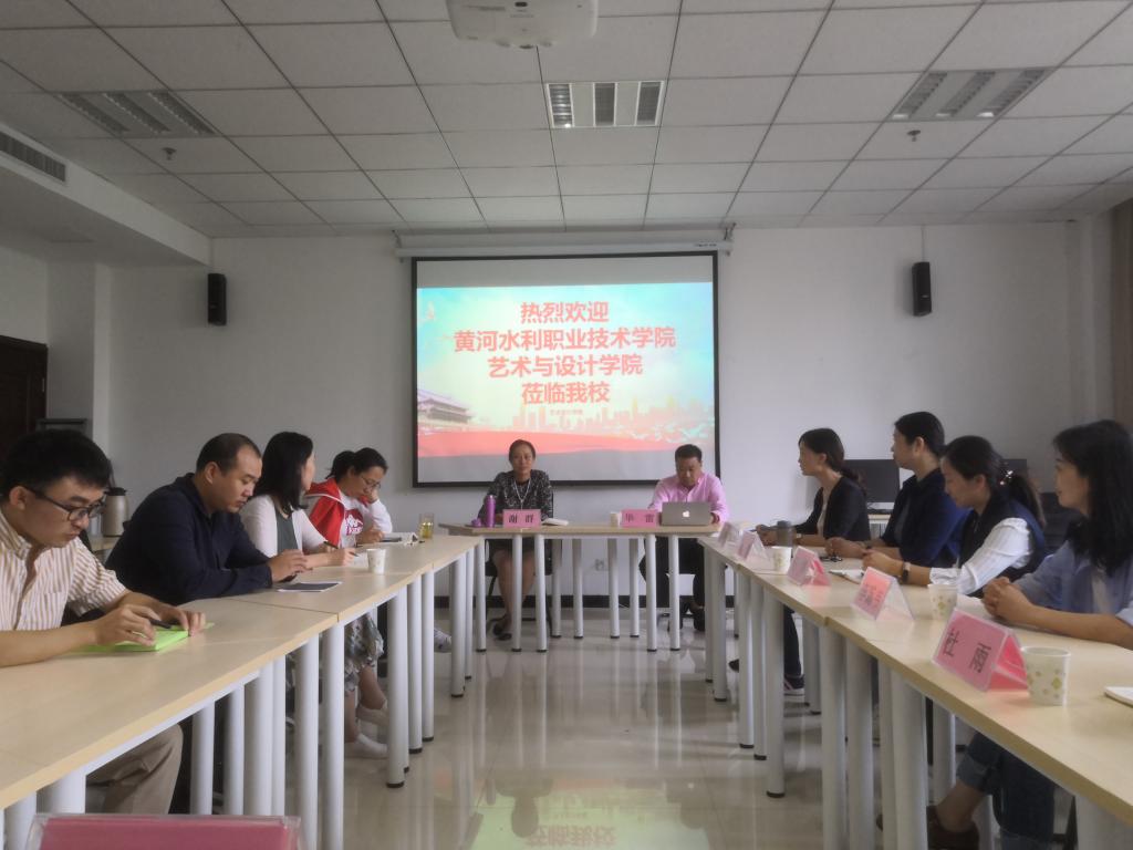 首先,河南经贸职业学院艺术设计学院院长谢群对我院的到到来表示欢迎并介绍了河南经贸职业学院艺术设计学院近几年的发展与成就。我院副院长鄢彬彬感谢河南经贸职业学院的热情接待,同时介绍了我院的基本情况。接下来,我院院华雷详细介绍了我院近几年艺术设计专业与实训室建设的情况与成就。并就艺术教学管理、艺术专业群建设、艺术设计工作室建设、艺术产业学院建设、学生顶岗实习及就业、学生管理,爱国教育,校园活动等相关问题与河南经贸职业学院艺术设计学院进行了交流研讨。