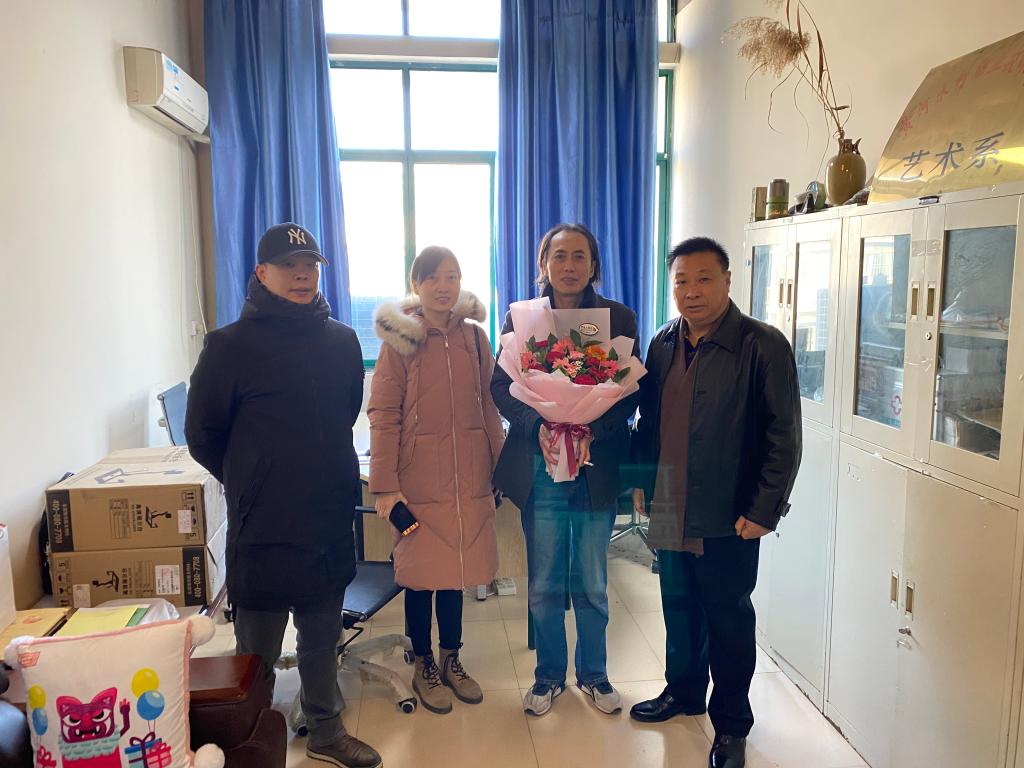 元旦佳节来临之际,我院领导一行亲自来到教学一线,向节假日依然奋战在工作岗位的教职工送上亲切的问候和诚挚的祝福。 我院院长华雷,书记耿亚杰,副院长鄢彬彬,副书记赵巍,办公室主任朱宁,分团委书记张嫚来到七号教学楼,走进课堂亲手为老师们送上鲜花表示慰问,对佳节之际辛勤工作的他们表示感谢,并祝师生们节日快乐。此次慰问活动让我院教师又一次感受到学院的温暖,增进了大家的感情,同时为老师们鼓足了干劲。