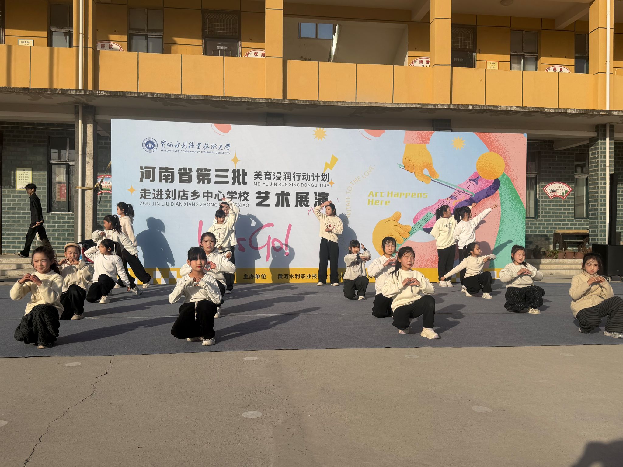 为深入落实河南省教育厅全面实施学校美育浸润行动计划,深化校地美育帮扶协作,11 月 25 日下午,黄河水利职业技术大学艺术与设计学院师生团队走进帮扶单位开封市刘店乡中心学校,带来了一场精彩纷呈的美育浸润展演。刘店乡政府、刘店乡中心学校、黄河水利职业大学艺术与设计学院等相关领导和老师出席此次活动。刘店乡乡长李明、黄河水利职业大学艺术与设计学院院长鄢彬彬分别致辞。刘店乡中心学校全体师生观看了展演。