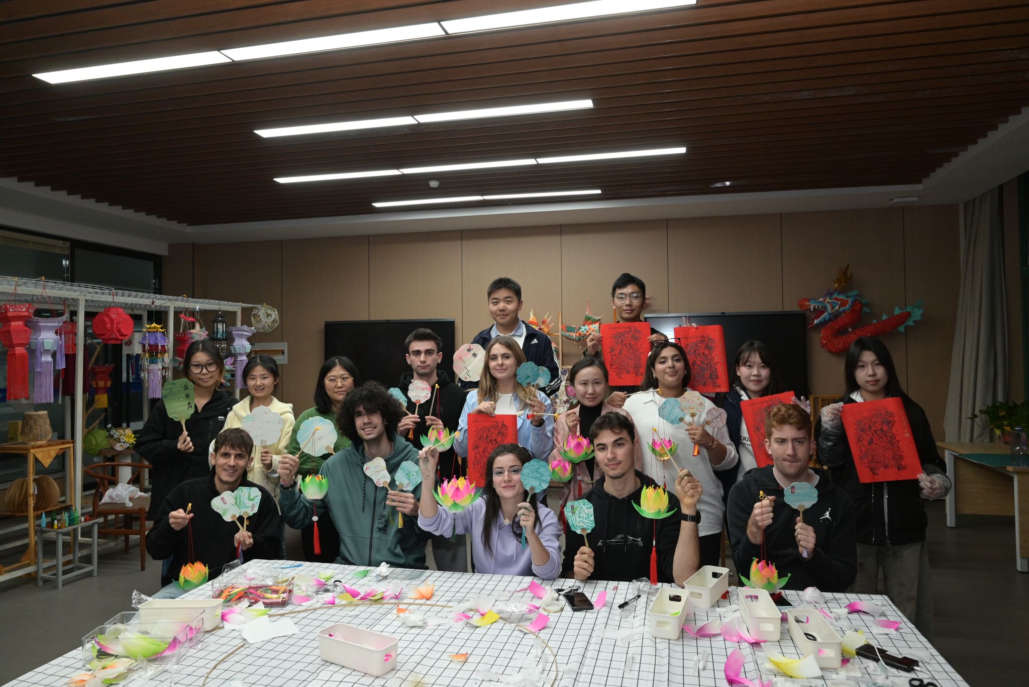 活动现场,艺术与设计学院(艺术教育中心)教师杨桦、周瑶精心准备了漆扇、灯彩、木版年画、扎染等中国非物质文化遗产体验项目。一天的体验结束时许多意大利学生都意犹未尽,深刻感受到了中国传统艺术的独特魅力。此次活动不仅为国际学生提供了一次难得的沉浸式体验机会,更让他们在动手实践中领略到了中国非物质文化遗产的博大精深。