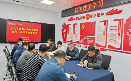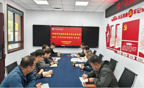 为贯彻落实校党委学习教育的部署要求,进一步提升教职工政治理论素养、思想觉悟和业务水平。10月14日下午,资产经营管理中心党总支组织全体党员进行政治理论学习。本次会议由党总支书记赵彦华主持。