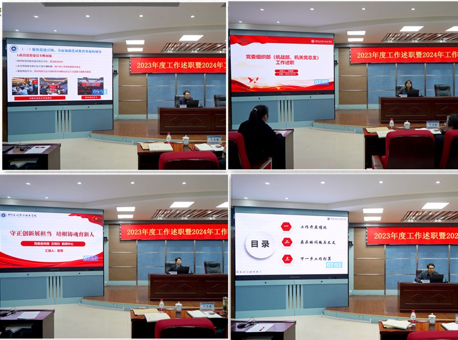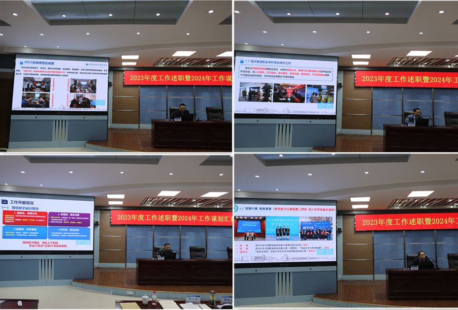 会议采取各部门、基层单位和省级科研平台负责人集中汇报,校领导进行简要点评的方式进行。50个校属单位总结了2023年工作完成情况,分析了存在的问题和不足,谋划了2024年工作目标和重点任务。