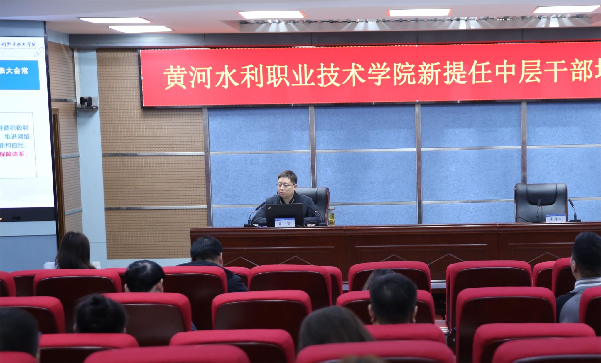 培训期间,河南省委党校王志立教授作了《转变工作作风提高干部履职能力》专题报告,河南大学新闻与传播学院院长王鹏飞作了《融媒时代的媒介变革与舆情引导》专题报告。党委委员、组织部部长马晓慧及信息化管理办公室主任曾赟分别围绕民族宗教和信息化等主题,着眼工作的重点难点,深入解读相关制度规定,引导新提任中层干部更好地适应岗位和学校事业发展需要。