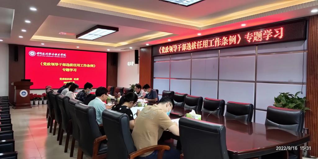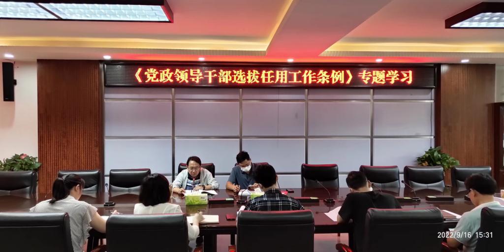 为进一步增强干部政策法规学习系统性、主动性,推进巡视整改工作落实落细落地,9月16日下午,党委组织部、纪委两部门组织全体工作人员共同专题学习《党政领导干部选拔任用工作条例》(以下简称“条例”)。