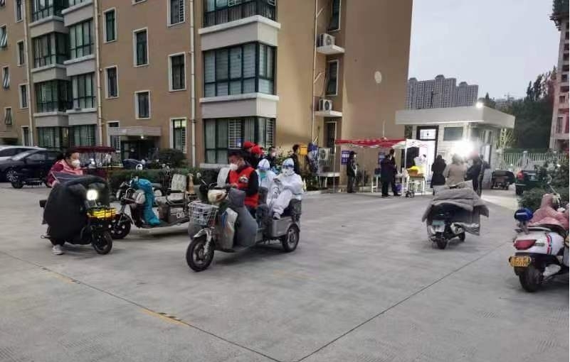 党支部成员驾驶三轮车接送核酸检测人员