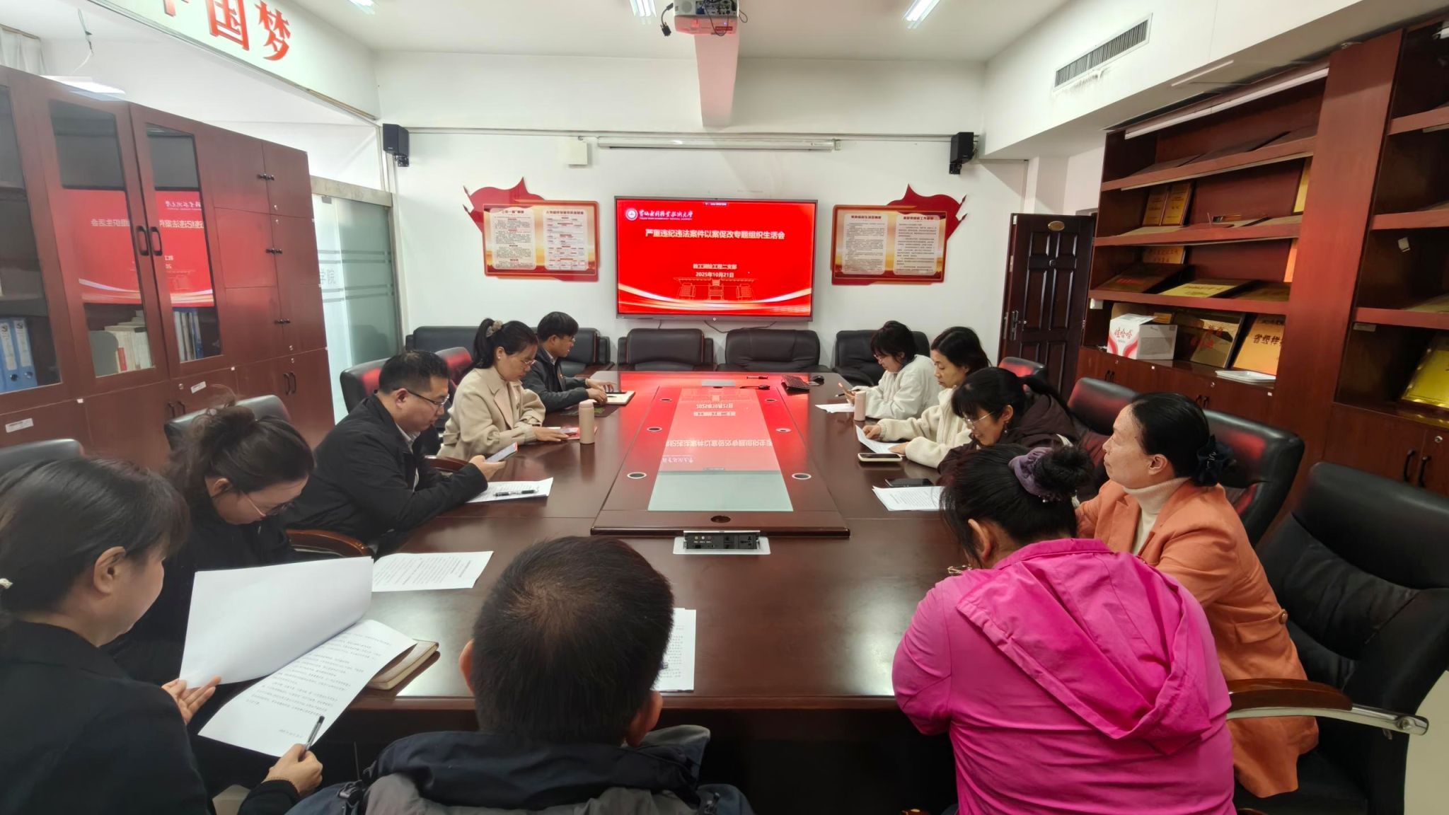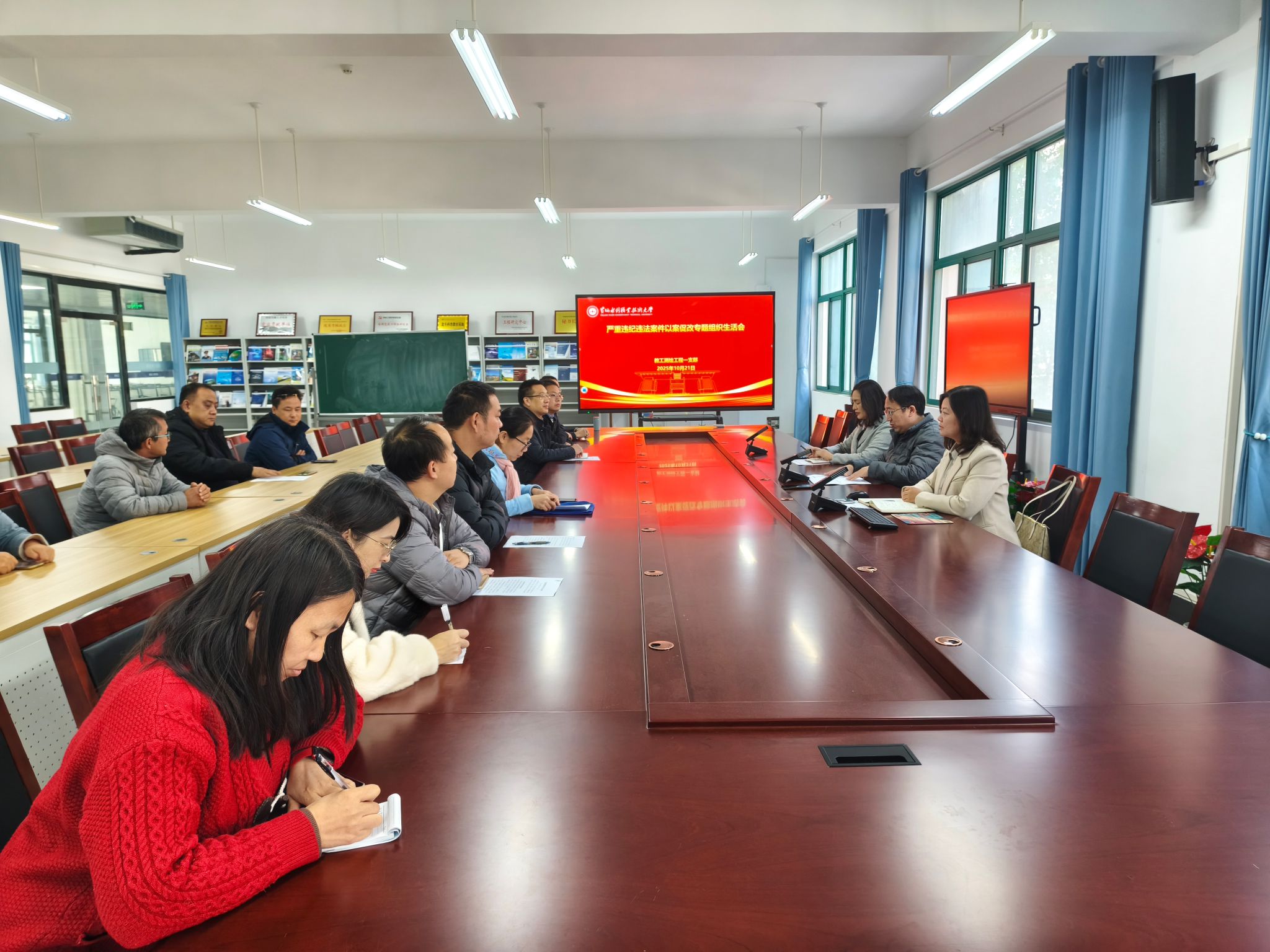为推进全面从严治党向纵深发展,以案促改、以案促治,进一步加强党风廉政建设,营造风清气正的政治生态,10月21日,测绘工程学院党总支各党支部分别召开以案促改专题组织生活会。会议由各党支部书记主持,支部党员参加。副校长周志琦以普通党员身份参加所在党支部组织生活会。