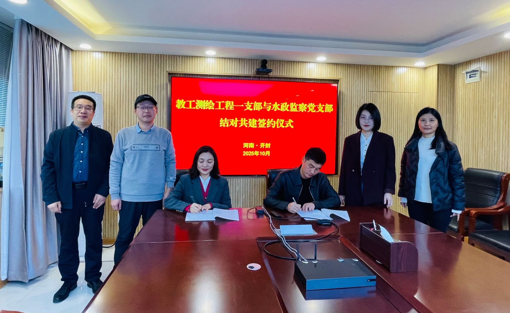 在与会党员的共同见证下,两位支部书记签署了《党支部结对共建协议》,围绕组织建设、党员互动、资源共享、业务协同等方面建立了长期、稳定的合作关系,为后续共建活动的规范化、常态化开展奠定了坚实基础。双方一致表示,将以此次主题党日活动为新起点,坚持围绕中心、服务大局,推动共建任务落地见效,努力形成“以共建促党建,以党建促业务,以业务强党建”的良性循环,为推进新阶段黄河流域水利事业高质量发展提供力量支撑。