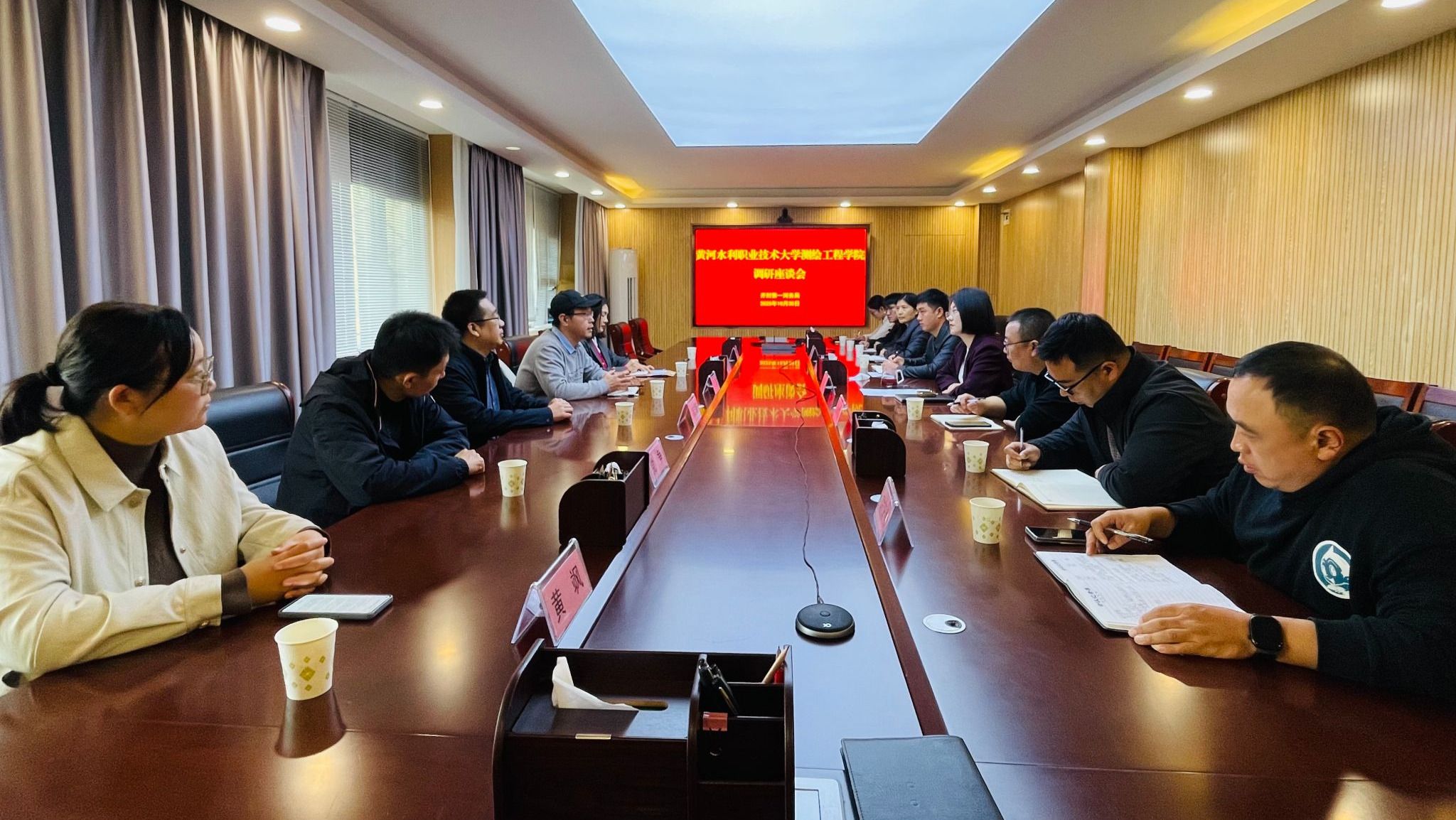 活动伊始,水政监察党支部书记田国茂对教工测绘工程一支部党员同志们的到来表示热烈欢迎。他表示,此次共建为水政监察工作注入了新的智力支持与发展动能,期待双方能以党建为引领,不仅在组织建设上互学互鉴,更能在业务领域开展紧密协作,将前沿的测绘技术、科研成果应用于水政监察、河道管理、防汛抗旱等具体实践中,共同破解一线工作难题。测绘工程学院党总支教工测绘工程一支部书记孔令惠发言,她强调,本次共建是支部推动党建业务双融双促、同频共振的重要举措,希望通过搭建共建平台,进一步发挥学校的人才与技术优势,用好河务部门的实践与阵地资源,实现“1+1>2”的聚合效应,共同推动党的政治优势转化为创新优势和发展优势。