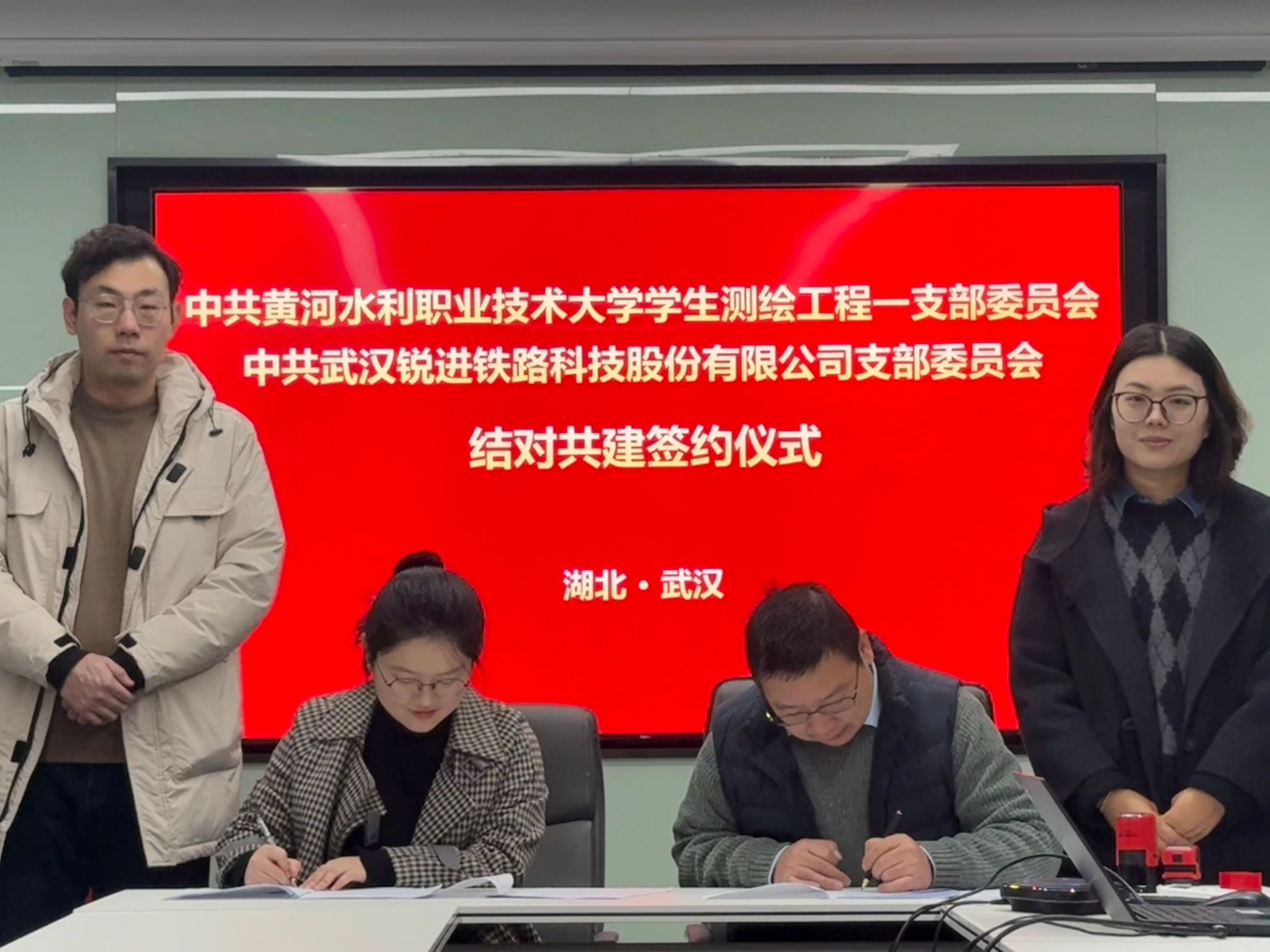 为探索党建引领下的校企合作新模式,实现资源共享、优势互补,12月18日,测绘工程学院学生测绘工程第一党支部和武汉锐进铁路科技股份有限公司党支部开展“校企党建‘同心圆’ 共绘育人‘新蓝图’”支部共建主题党日活动。