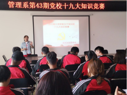 本期培训自3月中旬开始酝酿筹划,扎实开展了党课开班典礼、党总支(党支部)书记讲党课、专题辅导报告、多媒体视频教学、自学研读与分组讨论、社会实践、党的十九大知识竞赛等多个教学环节,围绕“党的基本知识”“当代大学生与中国共产党”“学习贯彻十九大,坚定理想与信仰”等主题开展专题教学。教学过程中,党委副书记王卫东为学员做了“不忘初心、牢记使命,全面建设中国特色社会主义高职院校,努力办人民满意的职业教育”的专题报告。(供图:二级党组织)